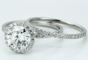 2. Halo: A centre diamond or gemstone surrounded by a circle of smaller diamonds or gemstones.