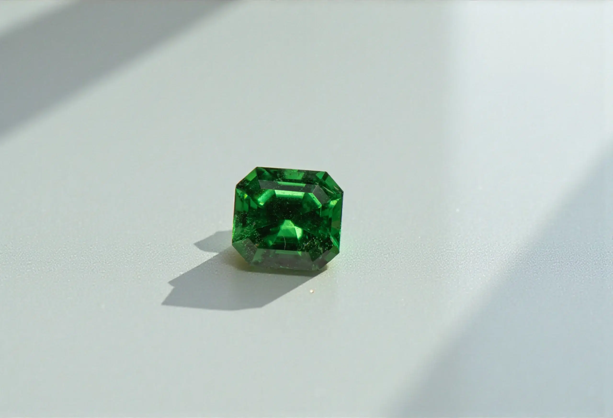 This fine tsavorite garnet displays an intensely saturated green with remarkable brightness and clarity. Cut in a precise octagonal step-cut form, the stone shows crisp geometry and excellent light return, allowing its colour to read vividly while maintaining structure and composure.