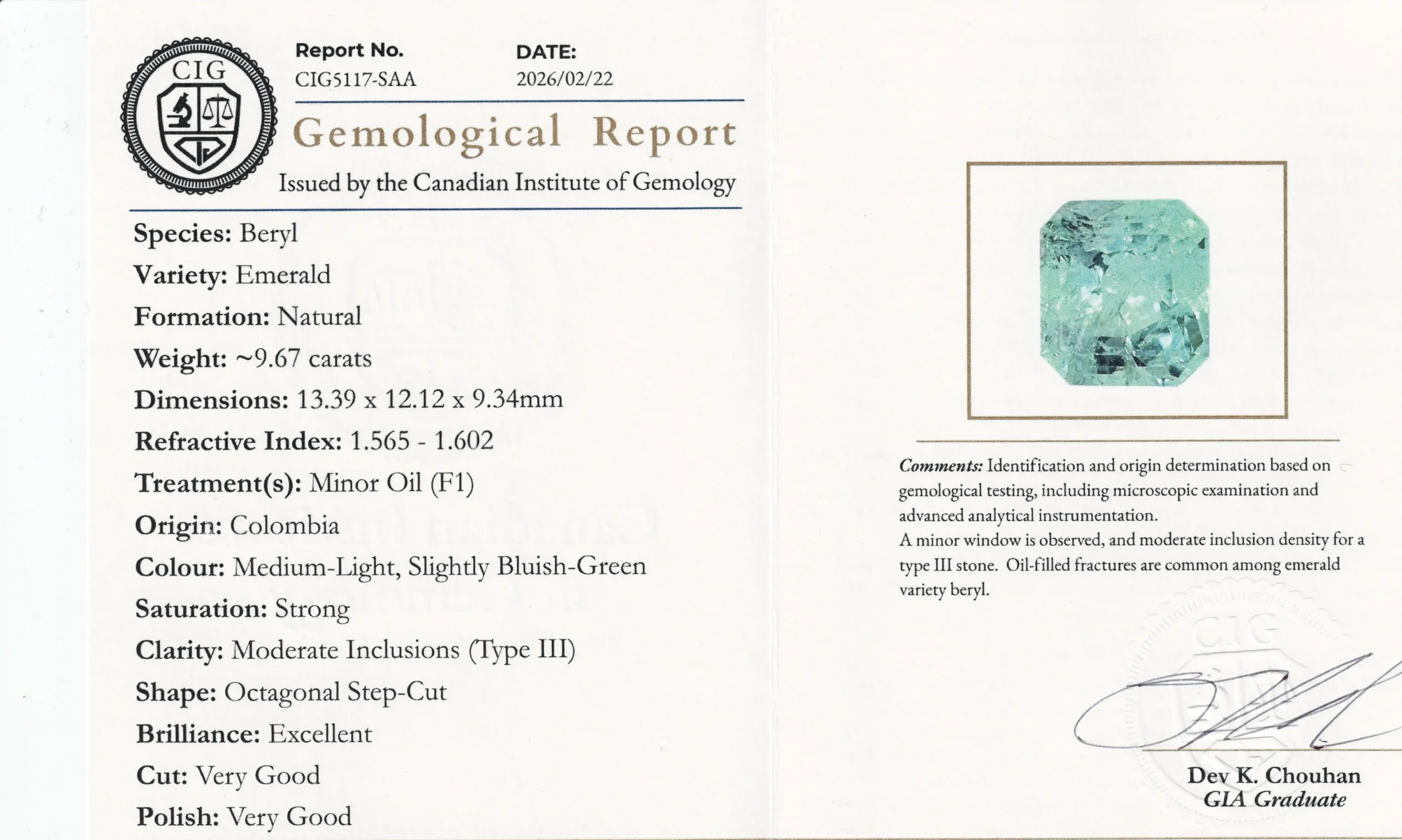 9.67ct Columbian Emerald