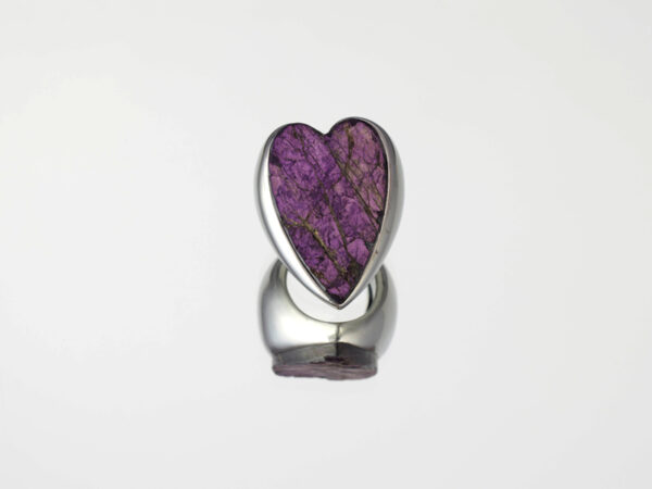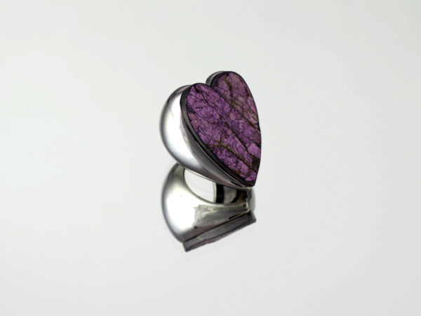 A quiet yet powerful symbol of individuality, the Small Purple Heart Ring is a one-of-a-kind piece from Alex Armen’s Muse & Fame Collection, where emotion meets form. At its center is a Rare Purpurite Heart, rich in violet tones and natural texture—cut in the gemstone capital of Idar-Oberstein, Germany.